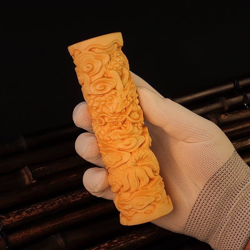 总之,拥有这样一款实心竹玉竹雕金蟾盘龙柱文玩把件,既能够体验到竹雕艺术的魅力,又能够将中国传统文化融入到日常生活中。无论是自用还是作为馈赠佳品,它都是一个完美的选择,无疑会成为您生活中的珍藏之品。