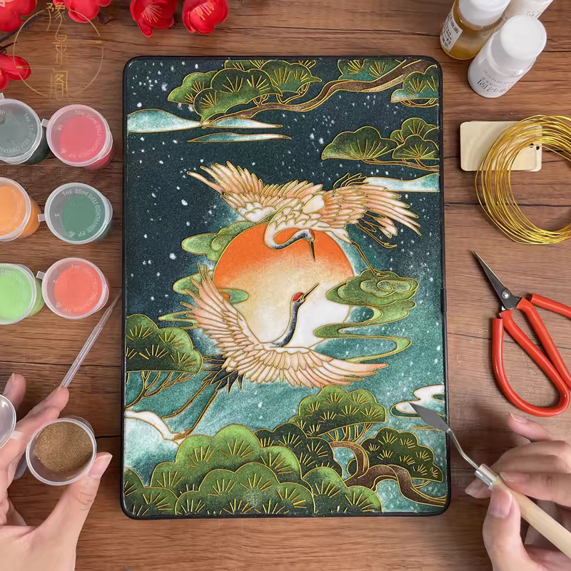 景泰蓝手工掐丝珐琅画体验是中国传统艺术的沐浴宝。它将精致的工艺与文化传承以及融入到各种幅值作品中,让您享受独特的中国风乐趣。此DIY材料包专为那些热爱艺术的人,尤其是包含传统手工工艺的手工设计了您需要的所有材料的详细制作指南。