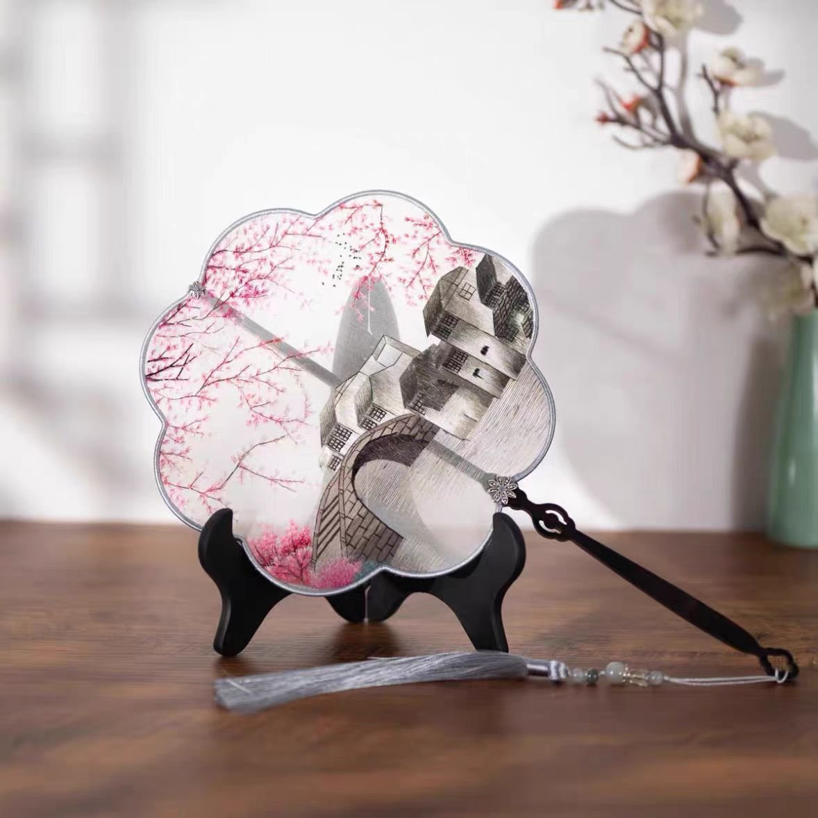 每个扇子都是艺术品,展示了苏州工艺精湛的工匠的复杂工艺,他们完善的手工工艺而闻名。双面设计确保这个扇子不仅实用,而且是一件精美的艺术品,可以增强任何装饰。